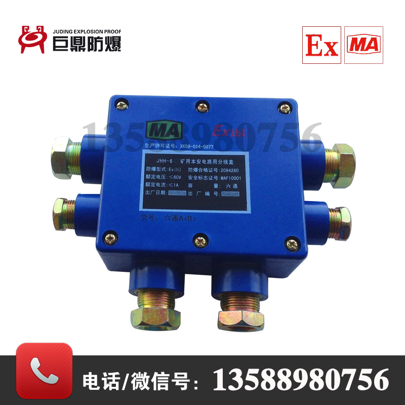 JD牌的5对,10对JHH-6本安接线盒,本安电路用矿用接线盒产品:估价:55,规格:JHH-6(A),产品系列编号:JD201612136666 发布日期:2016-12-13